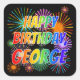 First Name "GEORGE", Fun "HAPPY BIRTHDAY" Square Sticker