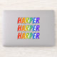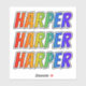 This vibrant, exciting, and fun sticker design features the common first name or given name "HARPER", with the letters of the name featuring a colourful rainbow spectrum like gradient colouring pattern. It might be a fun present to give to somebody who is named Harper. [~Z0000361]
