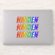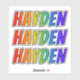 This multicolored, vibrant, and exciting sticker design features the common first name or given name "HAYDEN", with the letters of the name featuring a colourful rainbow spectrum like gradient colouring pattern. It might be a fun present to give to somebody who is named Hayden. [~Z0000361]