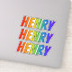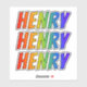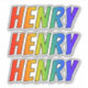 This fun, exciting, and vibrant sticker design features the common first name or given name "HENRY", with the letters of the name having a colourful rainbow spectrum like gradient colouring pattern. It might be a fun present to give to somebody whose given name is Henry. [~Z0000361]