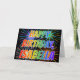 This vibrant, multicolored and fun birthday greeting card design features the message "HAPPY BIRTHDAY," and the common first name "ISABELLA" with the letters having a colorful rainbow spectrum like gradient coloring pattern. The background of the front also features a colorful pattern inspired by the look of bursting celebratory fireworks. The inside features a custom greeting message, or could perhaps be cleared and left blank if a message is to be written by hand instead. A greeting card like this might be a fun way to send a personalized birthday message to somebody named Isabella. [~Z0000350]