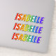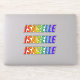 This multicolored, fun, and vibrant sticker design features the common first name or given name "ISABELLE", with the letters of the name featuring a colourful rainbow spectrum inspired gradient colouring pattern. It might be a fun present to give to somebody named Isabelle. [~Z0000361]
