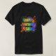This fun and lively shirt design has a vibrant bursting celebratory fireworks inspired pattern, and the message "HAPPY BIRTHDAY, JASMINE" having a colourful rainbow spectrum inspired gradient pattern. Shirts like this might be worn by the guests at a party being held to celebrate the birthday of somebody who is named Jasmine. [~Z0000453]