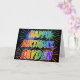 This multicolored and fun birthday greeting card design features the message "HAPPY BIRTHDAY," and the common first name "JAYDEN" with the letters having a colourful rainbow spectrum like gradient colouring pattern. The background of the front also features a colourful pattern inspired by the look of bursting celebratory fireworks. The inside features a customisable greeting message, or could perhaps be cleared and left blank if a message is to be written by hand instead. A birthday greeting card like this could be fun to give to somebody named Jayden on their birthday. [~Z0000350]