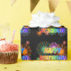 This lively and vibrant birthday-themed wrapping paper design features the message "HAPPY BIRTHDAY, JESSICA" having a colourful rainbow spectrum inspired gradient pattern, and an exciting bursting celebratory fireworks inspired background pattern. Exciting wrapping paper like this might be used when preparing presents being given to celebrate the birthday of somebody named Jessica. [~Z0000456]