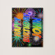 This fun, exciting, birthday-themed jigsaw puzzle design has the message "HAPPY BIRTHDAY, JOHN" having a colourful rainbow spectrum inspired gradient pattern, and a lively bursting celebratory fireworks inspired background pattern. A vibrant puzzle like this might be a fun way to send birthday wishes to somebody named John. [~Z0000465]