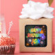 This fun and vibrant birthday-themed sticker design features the message "HAPPY BIRTHDAY, JON" having a colourful rainbow spectrum inspired gradient pattern, and an exciting bursting celebratory fireworks inspired background pattern. Fun stickers like this might be given as a birthday present, or used while wrapping presents, or used as a birthday party decoration when celebrating the birthday of somebody named Jon. [~Z0000457]