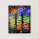 This fun and lively birthday-themed jigsaw puzzle design features the message "HAPPY BIRTHDAY, JOSHUA" having a colourful rainbow spectrum inspired gradient pattern, and an exciting bursting celebratory fireworks inspired background pattern. An exciting puzzle like this might be used to send birthday wishes to somebody named Joshua. [~Z0000465]