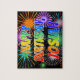 This vibrant and exciting birthday-themed jigsaw puzzle design features the message "HAPPY BIRTHDAY, JOSIAH" having a colourful rainbow spectrum inspired gradient pattern, and a fun bursting celebratory fireworks inspired background pattern. A vibrant puzzle like this might be a fun way to send birthday wishes to somebody named Josiah. [~Z0000465]
