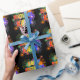 This exciting and fun birthday-themed wrapping paper design has the message "HAPPY BIRTHDAY, KATIE" having a colourful rainbow spectrum inspired gradient pattern, and a vibrant bursting celebratory fireworks inspired background pattern. Colourful wrapping paper like this might be used when preparing presents or gifts being given to celebrate the birthday of somebody named Katie. [~Z0000456]