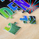 This fun, exciting, birthday-themed jigsaw puzzle design has the message "HAPPY BIRTHDAY, KAYDEN" having a colourful rainbow spectrum inspired gradient pattern, and a lively bursting celebratory fireworks inspired background pattern. A vibrant puzzle like this might be a fun way to acknowledge the birthday of somebody named Kayden. [~Z0000465]