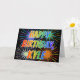 This fun, vibrant, multicolored birthday greeting card design features the message "HAPPY BIRTHDAY," and the common first name "KYLE" with the letters having a colourful rainbow spectrum like gradient colouring pattern. The background of the front also features a colourful pattern inspired by the look of bursting celebratory fireworks. The inside features a custom greeting message, or could perhaps be cleared and left blank if a message is to be written by hand instead. A greeting card like this could be a fun way to acknowledge the birthday of somebody named Kyle. [~Z0000350]