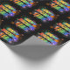 This fun and vibrant birthday-themed wrapping paper design has the message "HAPPY BIRTHDAY, LEAH" having a colourful rainbow spectrum inspired gradient pattern, and a lively bursting celebratory fireworks inspired background pattern. Fun wrapping paper like this might be used when wrapping gifts or presents that are being given in celebration of the birthday of somebody named Leah. [~Z0000456]