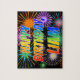 This lively, exciting, birthday-themed jigsaw puzzle design has the message "HAPPY BIRTHDAY, LIAM" having a colourful rainbow spectrum inspired gradient pattern, and a fun bursting celebratory fireworks inspired background pattern. An exciting puzzle like this might be used to send birthday wishes to somebody named Liam. [~Z0000465]