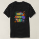 This lively and vibrant shirt design has a fun bursting celebratory fireworks inspired pattern, and the message "HAPPY BIRTHDAY, LILY" having a colourful rainbow spectrum inspired gradient pattern. Shirts like this might be worn by the attendees at a party being held in celebration of the birthday of somebody named Lily. [~Z0000453]
