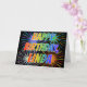 This multicolored and fun birthday greeting card design features the message "HAPPY BIRTHDAY," and the common first name "LINDA" with the letters having a colourful rainbow spectrum like gradient colouring pattern. The background of the front also features a colourful bursting fireworks inspired pattern. The inside features a customisable greeting message, or could perhaps be cleared and left blank if a message is to be written by hand instead. A birthday greeting card like this could be fun to give to somebody named Linda on their birthday. [~Z0000350]