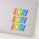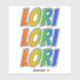This exciting, vibrant, and fun sticker design features the common first name or given name "LORI", with the letters of the name having a colourful rainbow spectrum like gradient colouring pattern. It might be a fun gift to give to somebody whose first name is Lori. [~Z0000361]