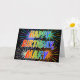 This multicolored and fun birthday greeting card design features the message "HAPPY BIRTHDAY," and the common first name "MARY" with the letters having a colorful rainbow spectrum like gradient coloring pattern. The background of the front also features a colorful pattern inspired by the appearance of bursting fireworks. The inside features a customized greeting message, or could perhaps be cleared and left blank if a message is to be written by hand instead. This might be a fun way to acknowledge the birthday of somebody named Mary. [~Z0000350]