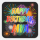 First Name "MYA", Fun "HAPPY BIRTHDAY" Square Sticker