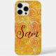 First Name Orange Grunge Artistic Circle Pattern Phone Case. Brighten up your day with this vibrant phone case featuring a stunning yellow and orange swirl design!