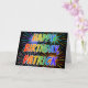 This fun, vibrant, multicolored birthday greeting card design features the message "HAPPY BIRTHDAY," and the common first name "PATRICK" with the letters having a colourful rainbow spectrum like gradient colouring pattern. The background of the front also features a colourful pattern inspired by the appearance of bursting fireworks. The inside features a customised greeting message, or could perhaps be cleared and left blank if a message is to be written by hand instead. A birthday greeting card like this could be fun to give to somebody named Patrick on their birthday. [~Z0000350]