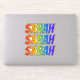 This exciting, fun, and multicolored sticker design features the common first name or given name "SARAH", with the letters of the name having a colourful rainbow spectrum inspired gradient colouring pattern. It might be a fun present to give to somebody who is named Sarah. [~Z0000361]