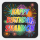 First Name "SHANNON", Fun "HAPPY BIRTHDAY" Square Sticker