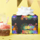 This lively and exciting birthday-themed wrapping paper design features the message "HAPPY BIRTHDAY, TIMOTHY" having a colourful rainbow spectrum inspired gradient pattern, and a fun bursting celebratory fireworks inspired background pattern. Vibrant wrapping paper like this might be used when wrapping presents being given in celebration of the birthday of somebody named Timothy. [~Z0000456]