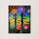 This vibrant and lively birthday-themed jigsaw puzzle design features the message "HAPPY BIRTHDAY, TYLER" having a colourful rainbow spectrum inspired gradient pattern, and a fun bursting celebratory fireworks inspired background pattern. A colourful puzzle like this might be used to send birthday greetings to somebody named Tyler. [~Z0000465]
