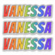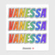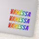 This exciting, multicolored, and fun sticker design features the common first name or given name "VANESSA", with the letters of the name featuring a colourful rainbow spectrum inspired gradient colouring pattern. It might be a fun present to give to somebody whose given name is Vanessa. [~Z0000361]