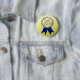 Gold first place award button pin, with a blue ribbon that says 1st Place. Great for kid's party games or any time you need a reward.