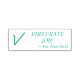 This motivating rubber stamp design features the positive message "FIRST-RATE JOB!" and a custom teacher's name. It also features a decorative check mark. It could be used by a teacher, educator, instructor, or tutor when marking assignments, to acknowledge that a student has done well.