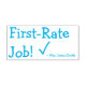 This motivating rubber stamp design features the motivating feedback message "First-Rate Job!" and a personalised teacher name. It also features a decorative checkmark. It could be used by a school teacher, educator, or tutor when grading student work, to acknowledge that a student has done an exceptional job.