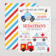 I chose the larger postcard sized one, as the font would be large for older eyes, and customised it keeping the Rail Ticket theme on the front, with venue address/date/time of party, and on the back I added another steam train and various 80 speed limit/rail signages. The trick is not to overdo it or it looks too busy. I also added at one end of the front side, a word of thanks from the birthday boy.