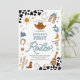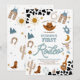 Saddle up for a fun-filled celebration with this western-themed first rodeo birthday invitation! Featuring cowboy hats, boots, lassos, steer skulls, and rustic cow print accents, this design perfectly captures the spirit of the Wild West. The warm brown, blue, and gold tones create a festive and stylish look thats ideal for a childs milestone party. Personalise with your event details to make it uniquely yours and set the stage for an unforgettable rodeo-themed birthday gathering.