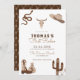 Rustle up some excitement for your little buckaroo's big day with this First Rodeo Cowboy Birthday Party Invitation! This custom invitation sets the perfect western theme with its cowboy boot motif and fun rodeo details.