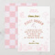 First rodeo pink cowgirl 1st birthday thank you card. Girls western thank you card with first birthday thank you message. Vintage pink and brown cowboy boot and cowboy hat, desert details and a vintage checkered pattern on the reverse. Matching party supplies, invitations and signs are available in the First Rodeo Pink Cowgirl 1st Birthday Baby Girl Collection in The Gathering Designs store.
