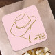 First rodeo, pink cowgirl hat 1st birthday stickers for party favors or mailings. 1st birthday sticker in classic pink with simple brown cowboy hat outline and party information. Customize with your information. Create the perfect wild west birthday party aesthetic with matching party supplies, invitations and signs are available in the First Rodeo Pink Cowgirl 1st Birthday Baby Girl Collection in The Gathering Designs store.