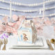 First Rodeo themed 1st Birthday medium gable favour box featuring a cute happy cowboy horse in pastel blue and beige and beige cow skin pattern with old paper texture. You can choose from 3 sizes of these gable favour boxes. Easily personalise all the text including the number of the Birthday. - Kate Eden Art