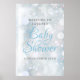 Gentle snowflakes fall across your baby shower, sprinkle or couples shower details, set in an elegant script baby blue and charcoal grey text on a magical winter background, this chic welcome sign is ideal for your special event. Designed by Thisisnotme©
