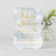 Gentle snowflakes fall across your gender neutral baby shower or sprinkle details, set in elegant gold text on a magical winter background.