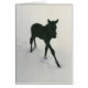 Thoroughbred colt's first steps after a snowfall.