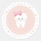First Tooth Party girly decoration. Blush pink sticker with a cute smiling tooth to add some fun to your celebration. Visit the shop to see all the collection. There are banners, buntings, favour boxes, water bottles, bodysuits and so much more available. And of course, sanitisers and masks are also in the shop!