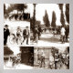 Middle left Maurice Garin and race officials. Bottom left race action with Maurice centre after the lead. Middle bottom after the win Maurice posing with his masseuse and his son. Bottom right at the finish Maurice celebrates with a disappointed possibly Leon Georget. This is a sepia tint, let me know if you would like it in black and white?
