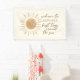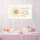 Baby 1st birthday party decor banner with a touch of boho style. Watercolor inspired first trip around the sun themed party with boho style colours, a sunshine, and adorable tiny footprints.