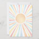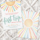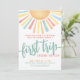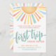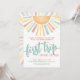 Celebrate your little one's First Trip Around the Sun with this bright and cheerful 1st birthday party invitation. At the top, "First Trip" is highlighted in bold script calligraphy, setting the tone for a joyful celebration. A big sun with vibrant rays in yellow, orange, red, teal, and blue beams down, creating a fun and colourful theme. The bottom of the invitation includes all the event details, styled in a mix of modern fonts and bold script typography, with colours that match the sun's rays. On the back, a larger version of the colourful sun shines brightly, adding an extra touch of sunshine to the design. If you prefer a more vivid look, you can remove the transparent white layer in the editor to enhance the sun's colours. This playful and vibrant design is perfect for celebrating your child's first year, with a blend of boho, retro, and modern elements. First Trip Around The Sun 1st Birthday Invitation Cute Watercolor Sun Yellow Red Orange Teal Blue.
