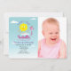 Simple, modern, cute yellow and pink First Trip Around The Sun 1st birthday invitation with photo of baby-girl.