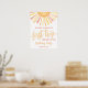 Thank guests for coming to your little one's First Trip Around The Sun 1st birthday party with this bright and cheerful sun-themed thank you sign! A large sun with vibrant rays in classic sun colours—yellow, orange, and a hint of red—sits at the top, setting the tone for a warm and joyful celebration. The phrase "First Trip Around The Sun" is displayed in a playful mix of modern fonts and bold script typography, adding a charming touch.
