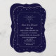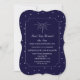 Elegant dark blue moon and stars invitation for a celestial 1st birthday theme celebration. Includes 1st trip around the Sun wording, serif typography, elegant crescent moon decal, and a simple dark blue starry background. Perfect gender neutral invitation for celebrating a baby boy or baby girl’s first birthday.
