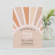 Birthday invitation featuring an arched frame with sun rays. Customise with your information for the birthday boy or girl. Click "click to customise further" to change the font style, size or colour.